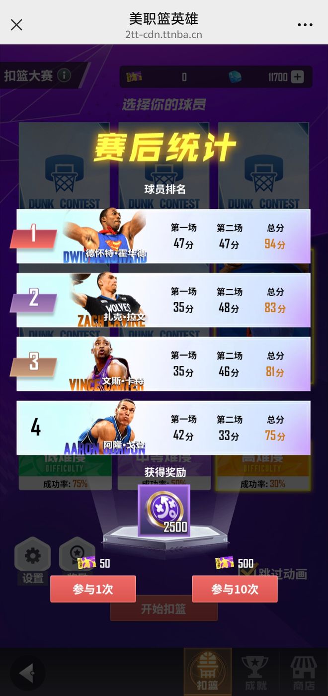 扫码进入游戏-活动-即可参与扣篮大赛赢巅峰教练